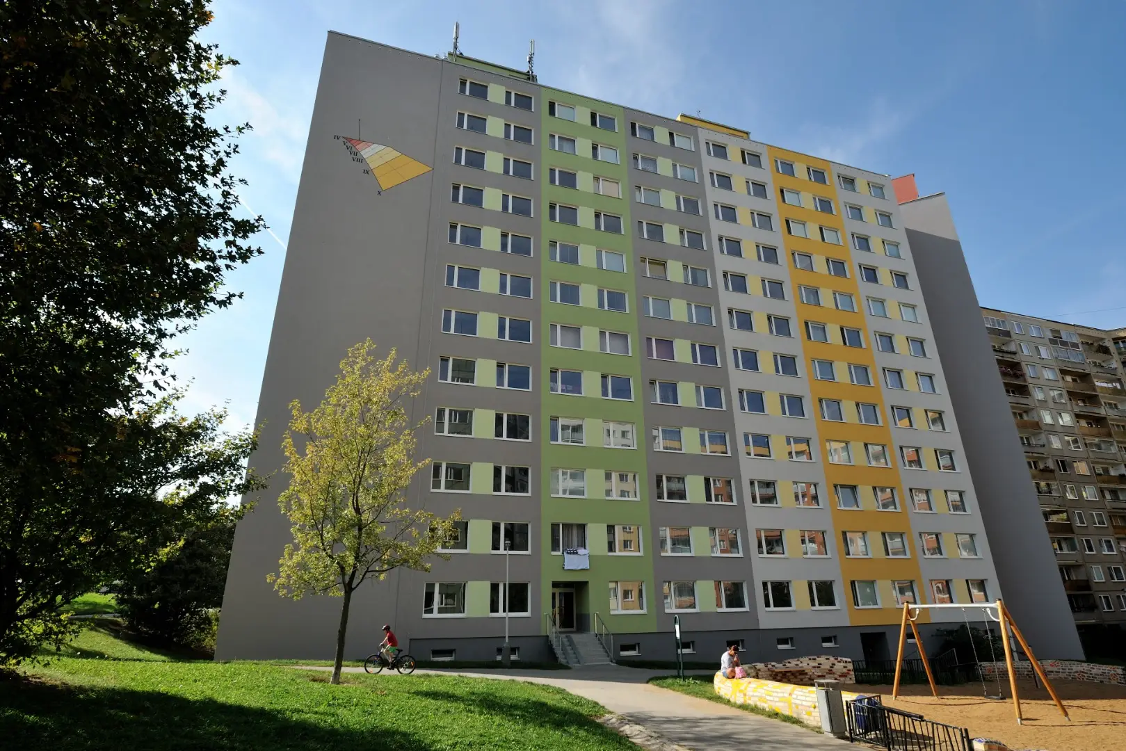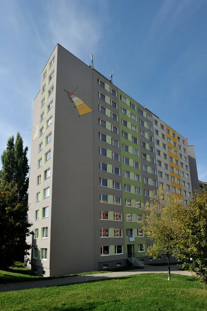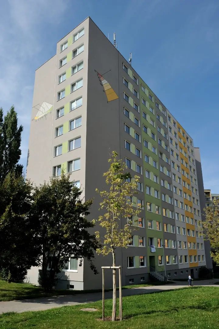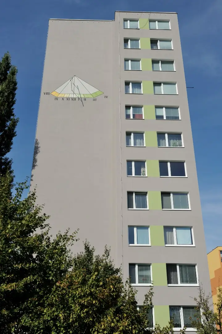 Dominantou objektu jsou sluneční hodiny, které se staly výrazným estetickým prvkem celé fasády. Kombinace moderního vzhledu, svěžích barev a technicky precizního zpracování vytvořila z původního panelového domu atraktivní a funkční objekt, který přispívá ke zlepšení vzhledu celé lokality.