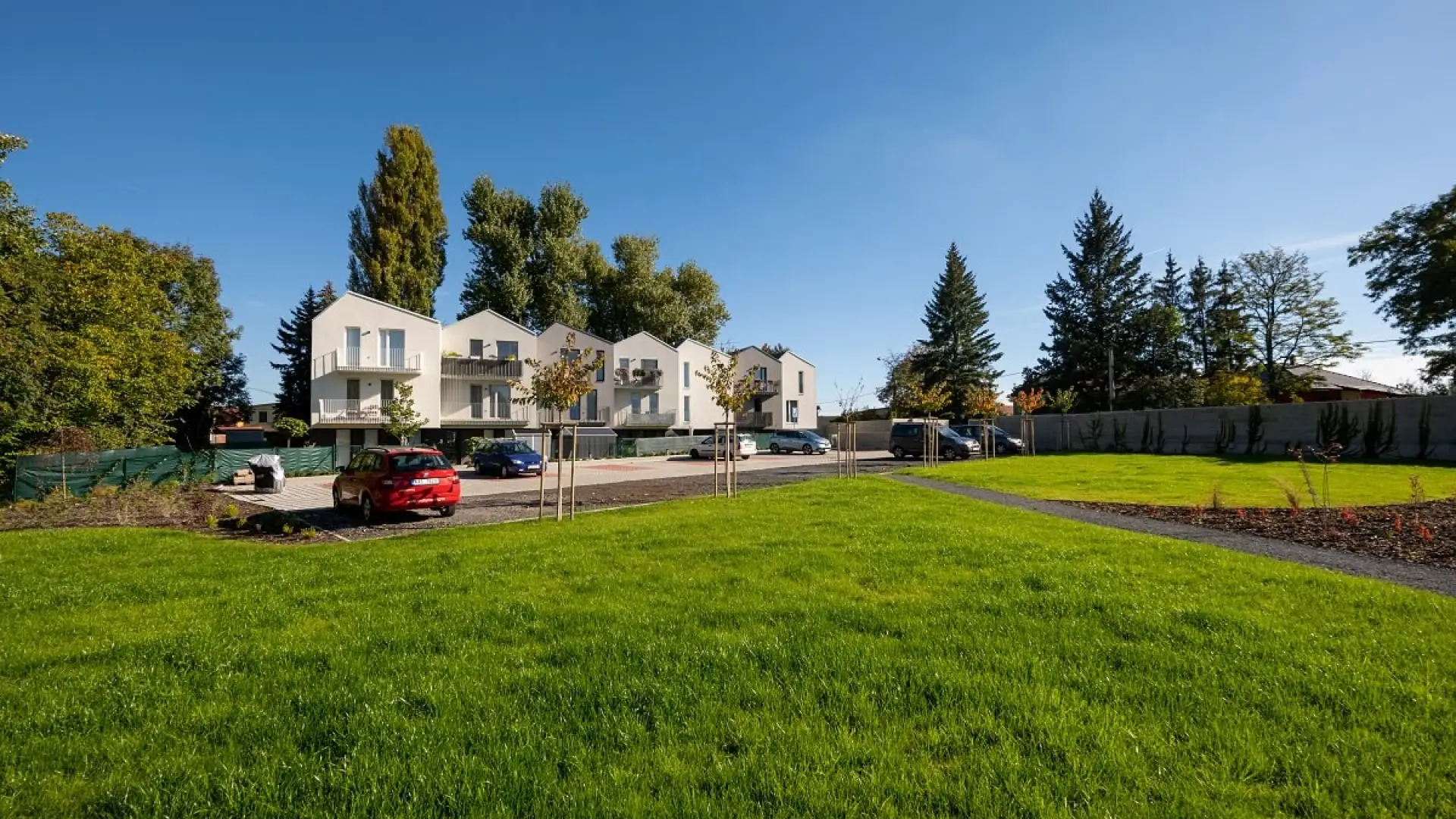Dalším velkým lákadlem nového komplexu je vlastní parkovací místo a soukromá předzahrádka či prostorný balkón. Romantické duše zajisté ocení kombinaci velkých francouzských oken, hustou zeleň a orientaci bytu na jihozápad. Pro praktické duše zmiňme, že byty disponují podlahovým vytápěním, takže studené nohy konečně zmizí z denního pořádku, nebo že vytápění a ohřev vody je zajištěn tepelným čerpadlem.