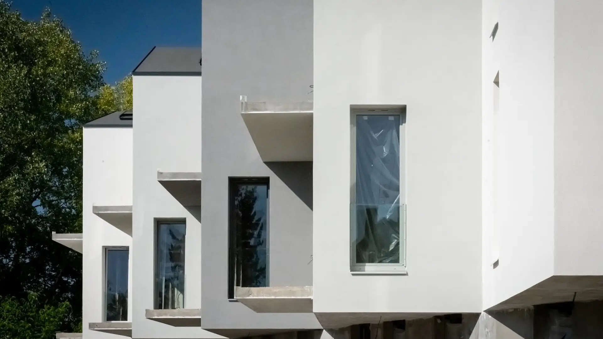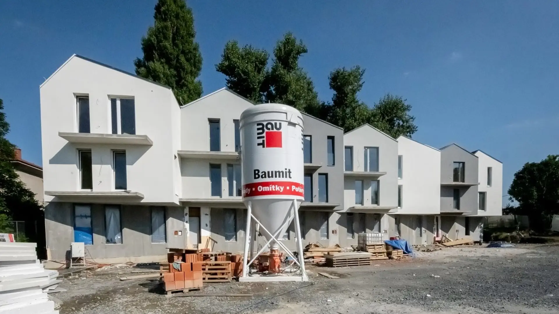 Domečky jsou řešeny v rámci své hmoty monochromaticky – barva fasády, rámů okenních výplní, klempířských i zámečnických prvků včetně zábradlí balkonů jsou sladěny do jednoho odstínu. Jen okenní rámy v podnoži jsou černé.