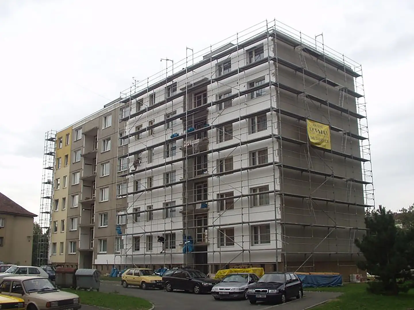 kompletní provedení dodatečných tepelných izolací obvodových stěn bytových podlaží včetně konečné povrchové úpravy obvodových stěn mimo soklu objektu