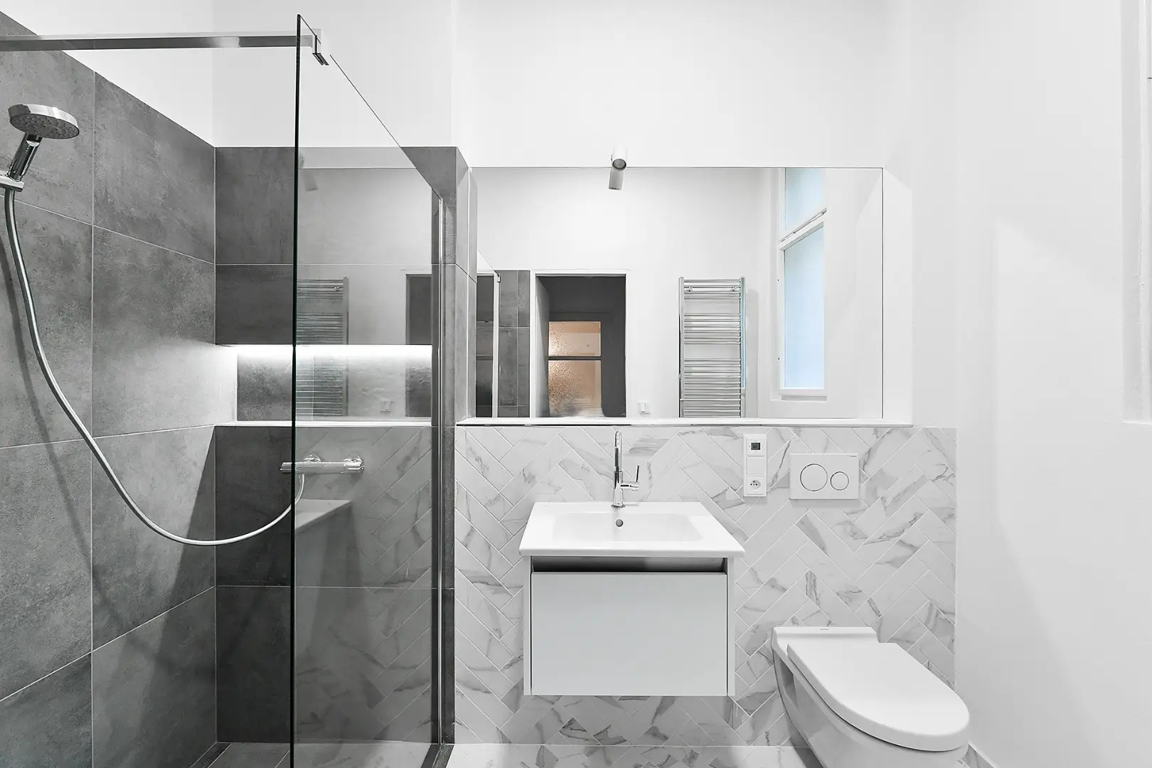 Při vybavování bytů jsme neopomněli ani ten nejmenší detail. Nově vybavené koupelny, s moderními sanitárními zařízeními a stylovými obklady, přinášely do interiéru nejen estetickou hodnotu, ale také funkčnost a praktičnost. Omítky, podlahy a kompletní rozvody elektroinstalací, vody, topení a klimatizace byly pečlivě navrženy a provedeny s ohledem na dlouhodobou životnost a spolehlivost.