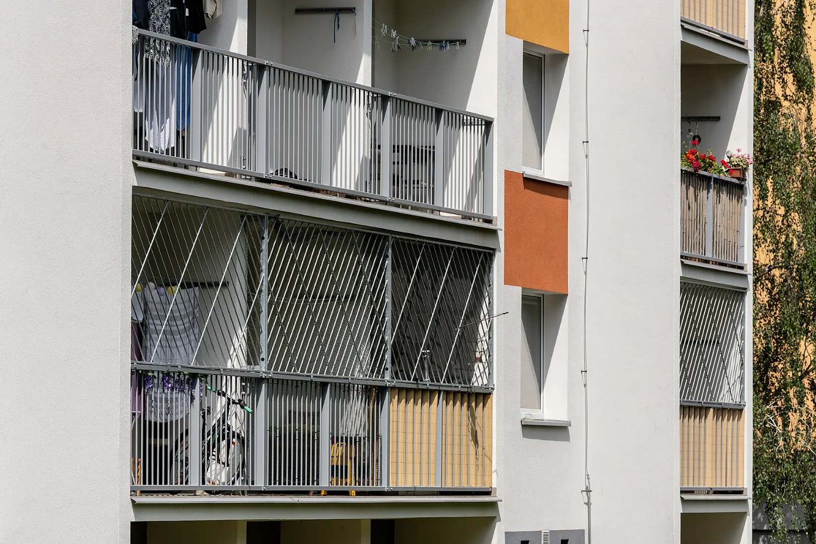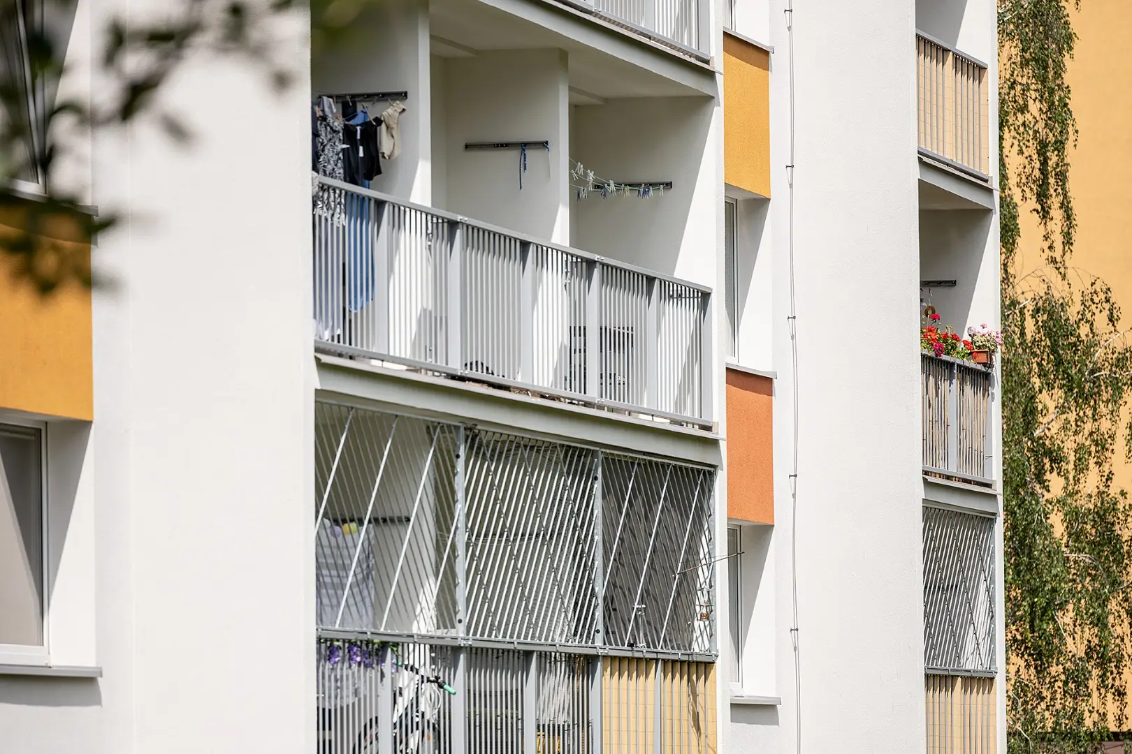 Modernizace zlepšila tepelně technické vlastnosti budovy, což vede k významným úsporám energie na vytápění. Na podélných průčelních fasádách byla použita tepelná izolace z minerálních vláken, a v oblastech mimo lodžie byl použit tepelný izolant EPS Grey Wall Plus. Také jsme dbali na dodržení požadavků normy ČSN 73 0810:2016, která zahrnovala mimo jiné instalaci průběžných požárních pásů nad okenními otvory. Tato opatření nejen zvyšují energetickou účinnost budovy, ale také zajišťují vysokou úroveň požární bezpečnosti, což je klíčové pro ochranu obyvatel.