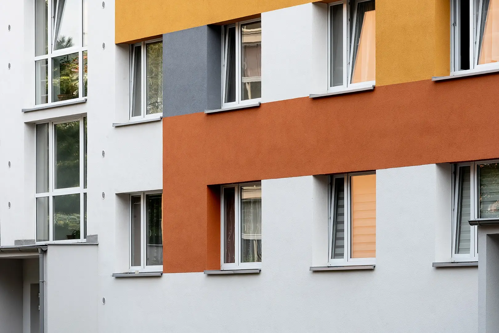 V prostoru lodžií byla použita omítka StoSilco K, a v soklové části StoSuperlit se zrnitostí 2 mm. Tyto materiály nejen zlepšily izolační vlastnosti budovy, ale také přispěly k modernímu a atraktivnímu vzhledu fasády.