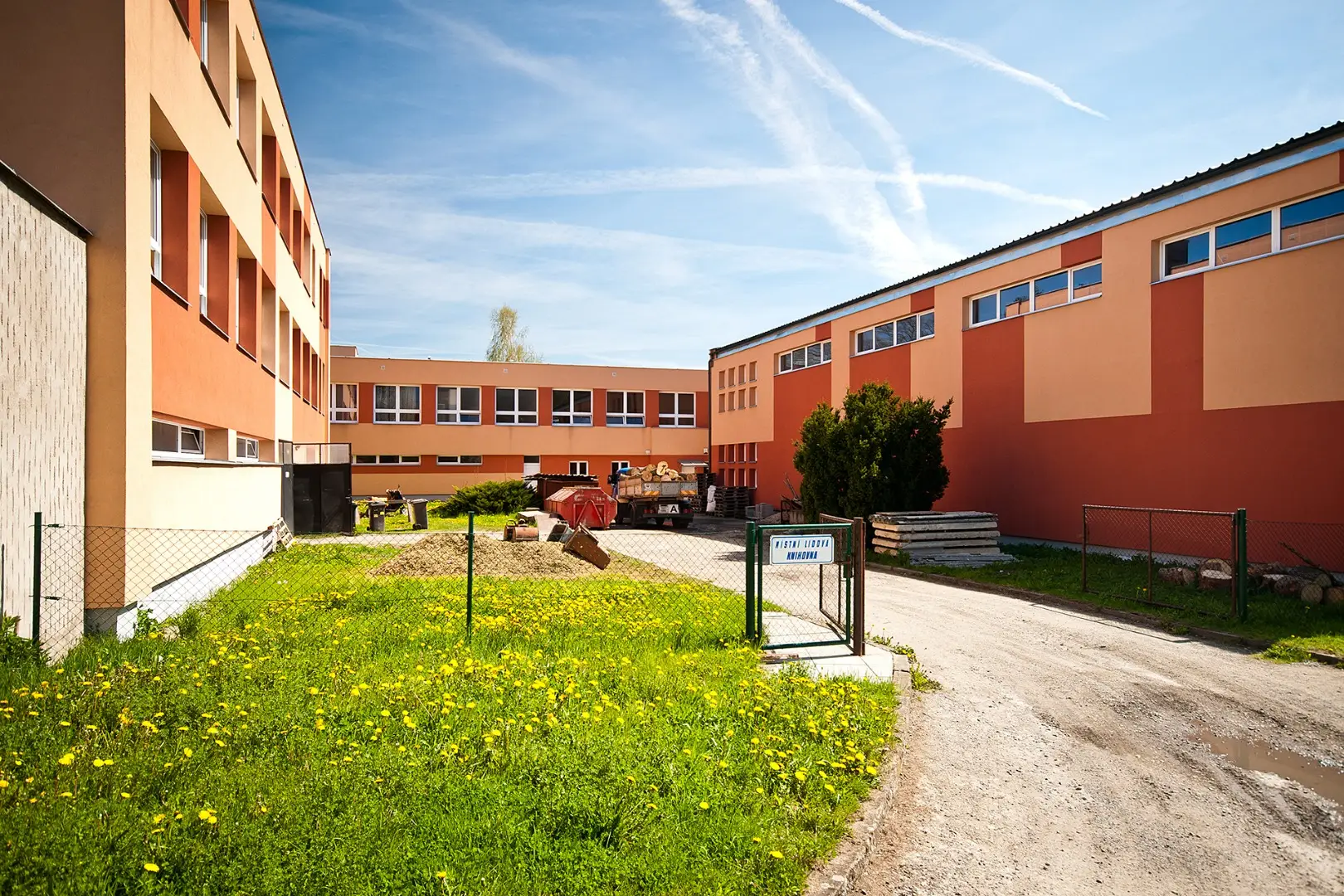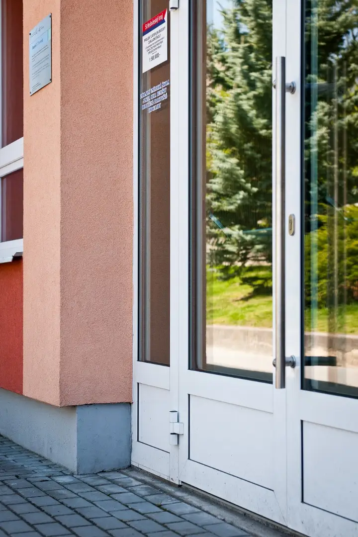 Meziokenní vložky a původní schodišťové prosklené stěny byly dozděny pomocí pórobetonových tvárnic. V rámci výměny výplní otvorů proběhlo začištění interiérových připojovacích spár, osazení parapetních plechů a výmalba jednotlivých místností celého objektu. Jednotlivé vstupy do objektu byly osazeny kvalitními hliníkovými portály z německého profilového systému HUECK série 2.1- profily s přerušeným tepelným mostem - šířka profilu 65 mm, osazené systémovým kováním.