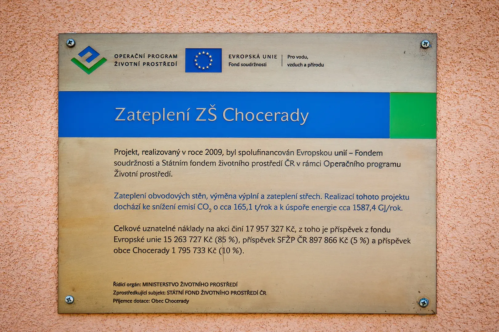 V malebné obci Chocerady, která leží necelých 40 km jihovýchodně od hlavního města Prahy u řeky Sázavy, je budova základní a mateřské školy. Tato budova dostala o letních prázdninách roku 2008 a 2009 nový kabát spolu s novými plastovými a hliníkovými výplněmi otvorů.