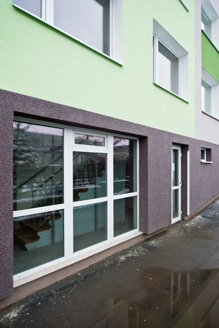 V objektu byly osazeny nové vnější parapety z hliníkového plechu v bílém provedení, vnější parapety oken na lodžiích byly dle požadavku investora provedeny z keramického obkladu ve stejném barevném provedení jako dlažba podlahy lodžie.
