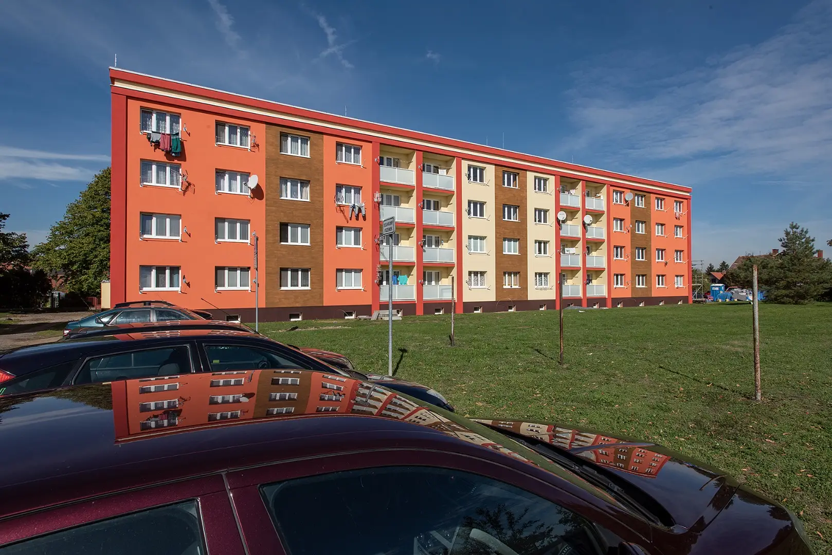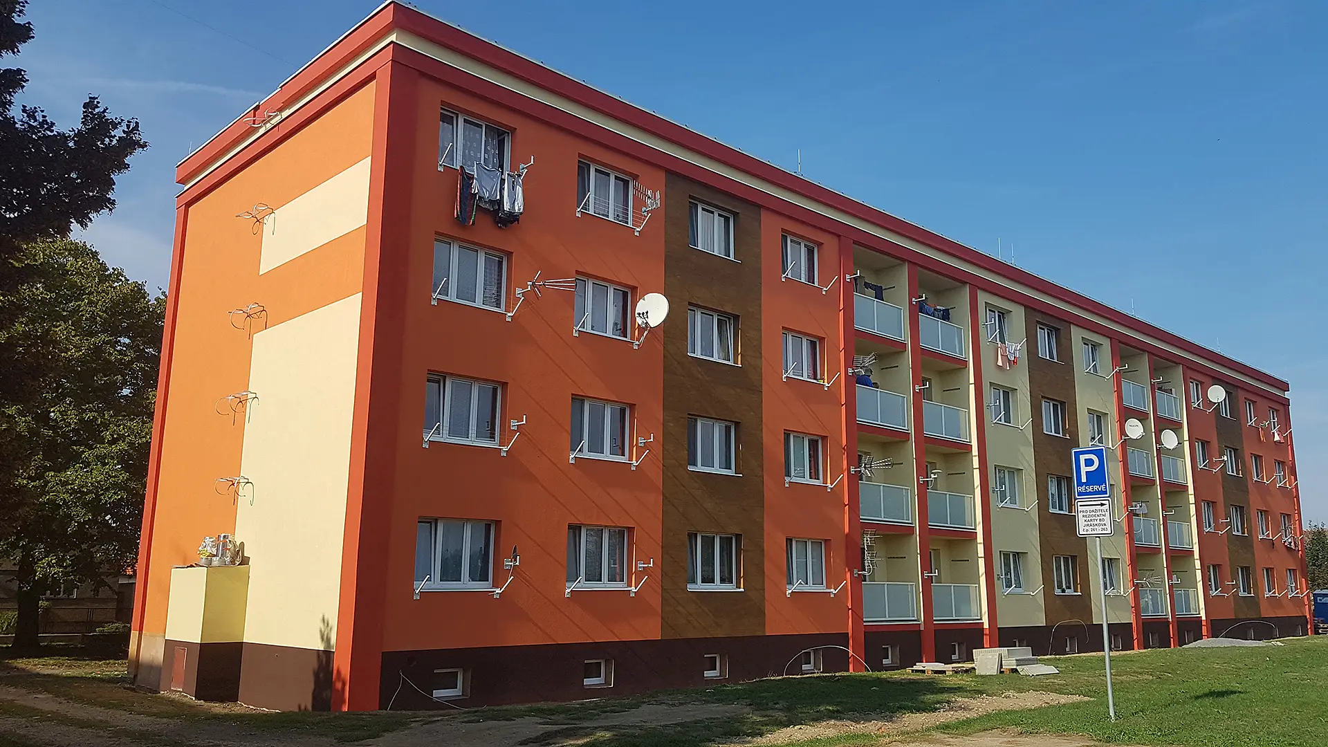 Původní fasáda panelového domu ze 70. let prošla kompletní revitalizací. Realizovali jsme nové zateplení obvodového pláště, opravu povrchových vrstev a výměnu oplechování. Použitím kvalitních izolačních materiálů jsme výrazně zlepšili energetickou účinnost objektu a díky modernímu barevnému řešení jsme fasádě dodali svěží, současný vzhled.