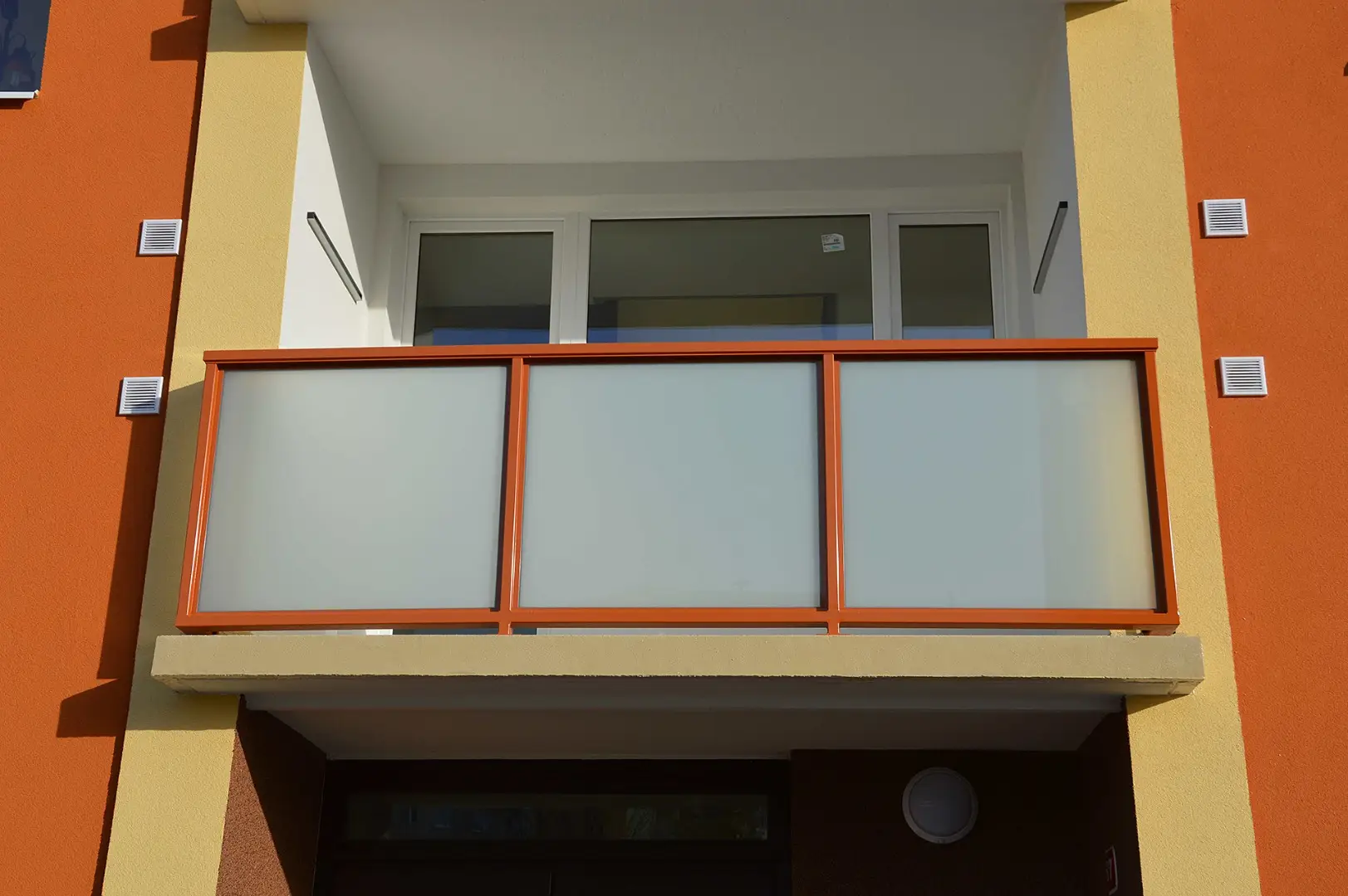 Na domě v Kralovické ulici došlo k výměně balkonových zábradlí za nová hliníková zábradlí Klasik vertikal 3450x1100mm, výplň Connex mléčný 6 mm a následné zasklení lodžií rámovým systémem, včetně zakrytí boků polykarbonátem.
