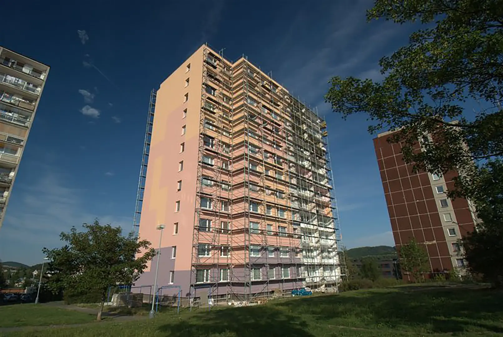 - kompletní provedení dodatečných tepelných izolací obvodových stěn bytových podlaží včetně konečné povrchové úpravy obvodových stěn celého domu vyjma soklu objektu