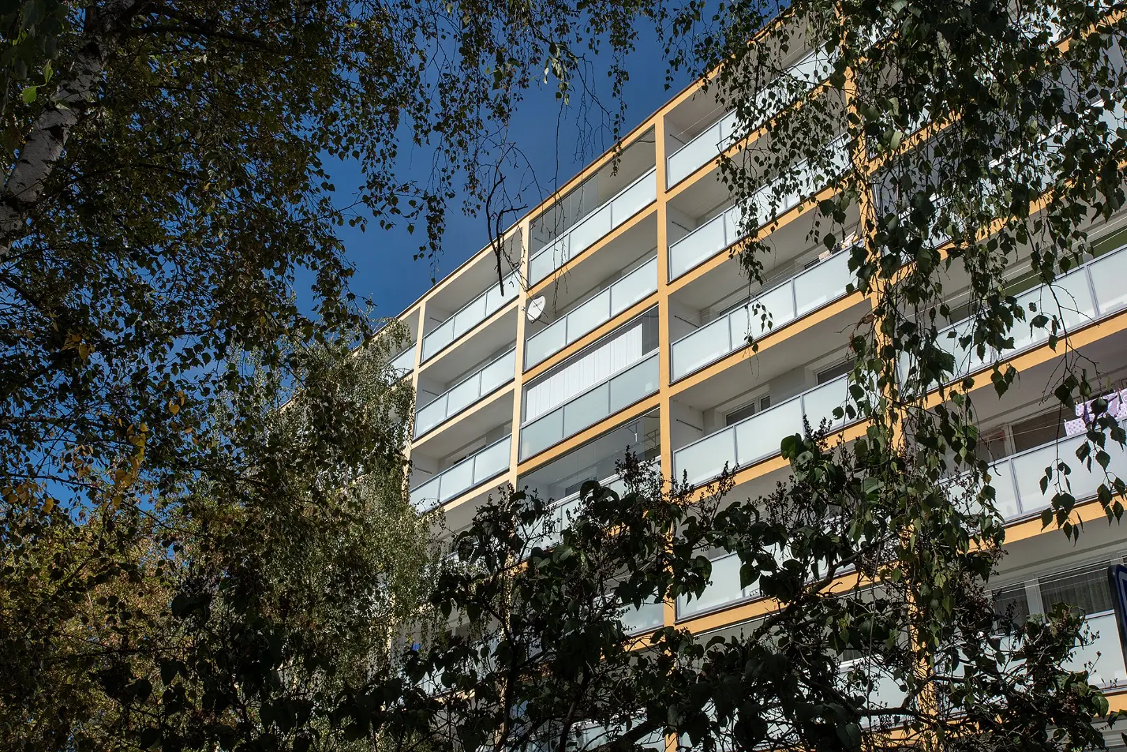 Dům má osm podlaží, jeden vchod, je obdélníkového půdorysu a přímo navazuje na vedlejší, již zateplený dům. Dokončen byl v roce 1974 a výraznějším zásahem prošel v roce 2009, kdy byla vyměněna původní dřevěná okna za plastová a střecha se dočkala zateplení. O devět let později si vedení společenství vybralo naší společnost KASTEN pro zateplení a celkovou regeneraci fasády.