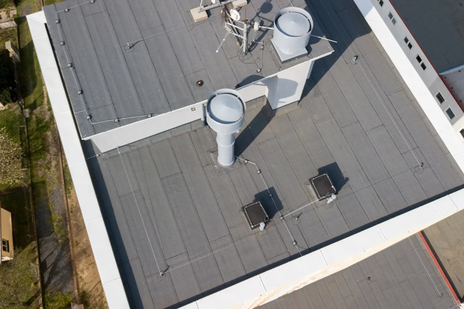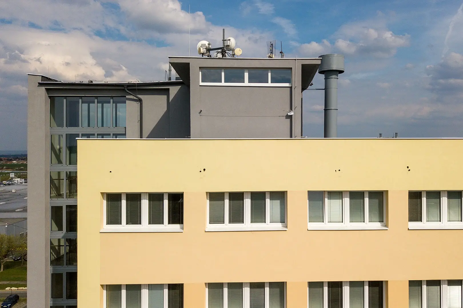 Stejné souvrství asfaltových pásů tvoří novou střešní izolaci také na střeše parkovací plochy, která přímo navazuje na budovu v těsné blízkosti hlavního vstupu.