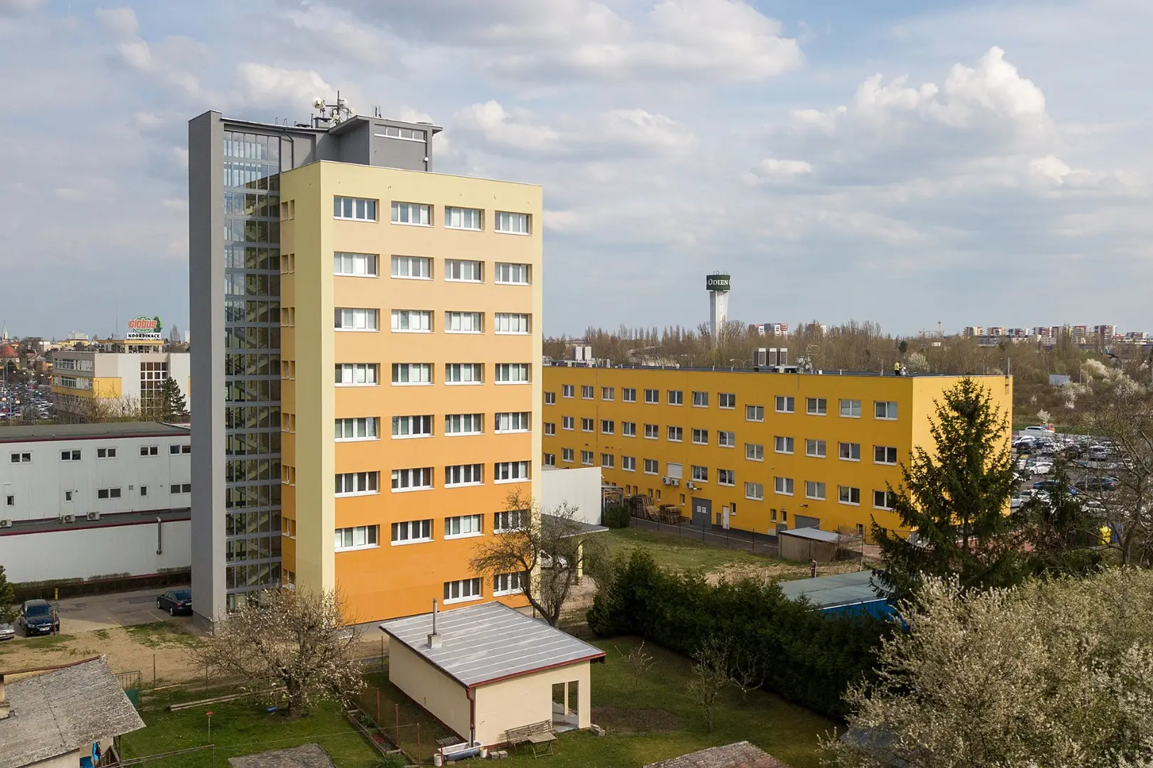 Ubytovací zařízení, sloužící pro účely Ministerstva vnitra, je součástí zástavby polyfunkčních objektů na severovýchodním okraji hlavního města Prahy, v katastrálním území Čakovice. Jedná se o osmipodlažní budovu, s architektonicky výrazným pásem schodiště v boční části budovy, probíhající až ke střešní nástavbě. Přímo na budovu navazuje zastřešená parkovací plocha, umístěna vedle hlavního vstupu.