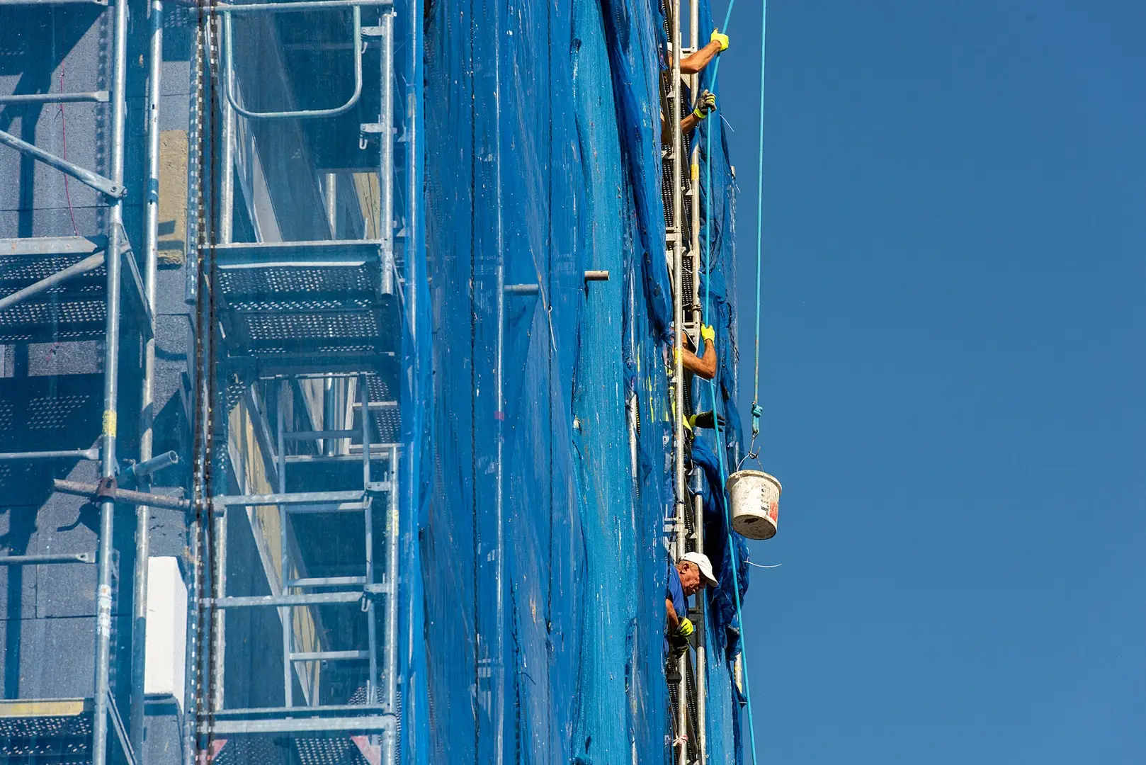 Požadovaného cíle rekonstrukce, vylepšení energetické bilance, bylo dosaženo zateplením obvodového pláště fasádním polystyrénem tloušťky 160 mm v kombinaci s tzv. požárními pásy z minerální izolace, které byly instalovány nad okna a v místech s vyššími nároky na požární ochranu. V tomto případě byla minerální izolace použita na zateplení stěn od výšky 22,5 m až po atiku, a také na svislý pás u schodišťových oken.