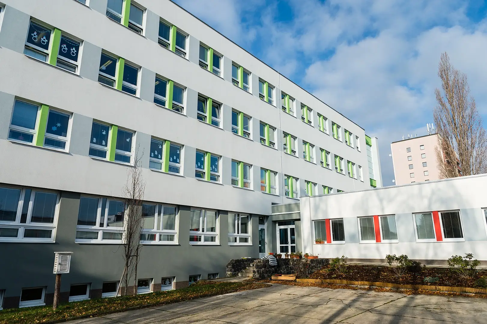 Předmětem celého projektu je snížení energetické náročnosti areálu. Projekt řešil výměnu oken a dvěří, zateplení a povrchové úpravy všech fasád budov. Povrchová úprava fasádních ploch byla v tenkovrstvé probarvené omítce aplikované na kontaktní zateplovací systém. Zachování stávajícího charakteru a architektonického výrazu původního architektonického konceptu, byť poplatnému době jeho vzniku – konce sedmdesátých let minulého století, bylo velice důležité. Stávající architektonický výraz je velmi výrazně spjat s místem stavby tj. se sídlištní panelovou zástavbou pocházející ze stejné doby.