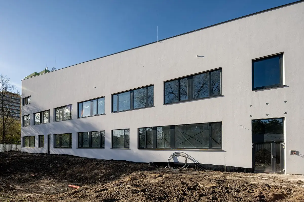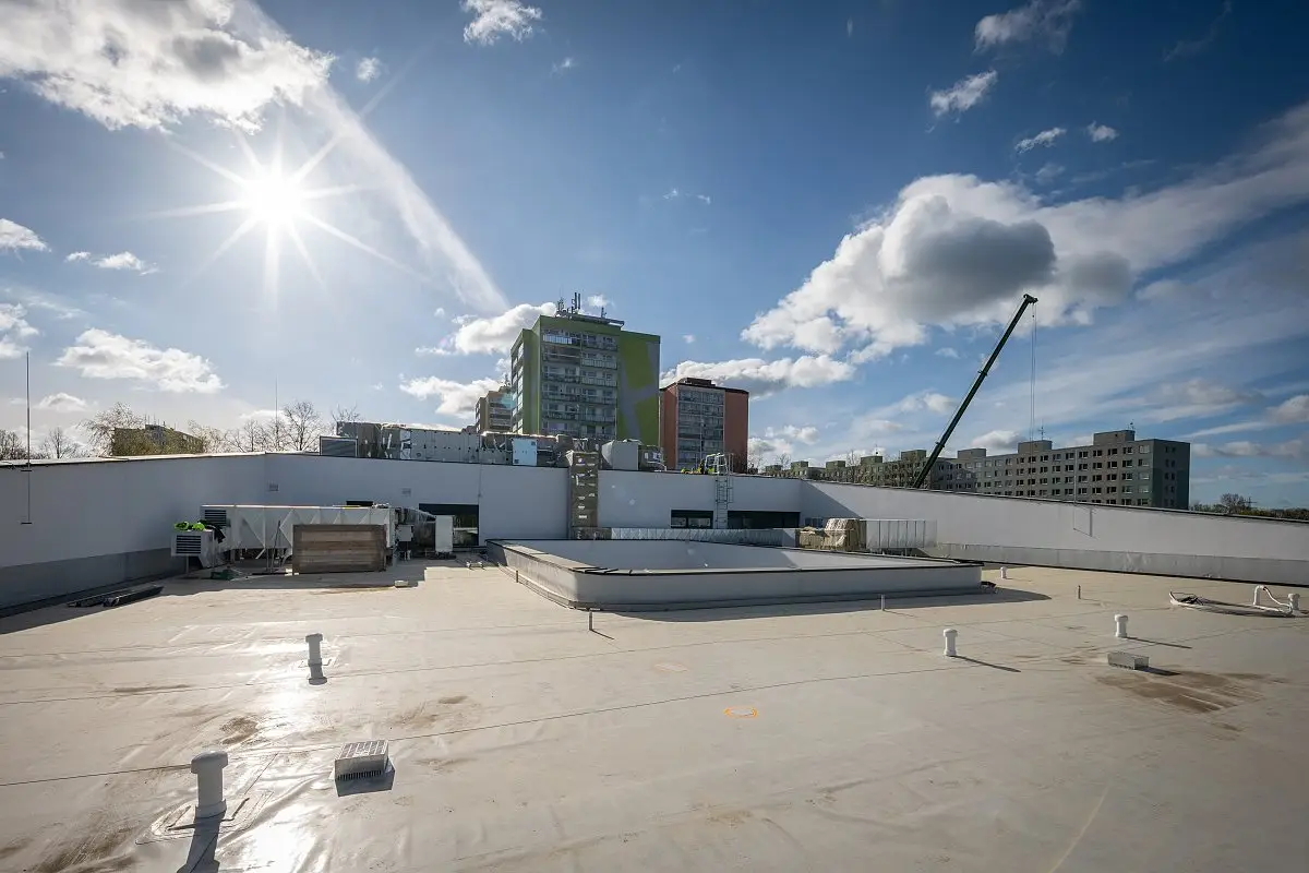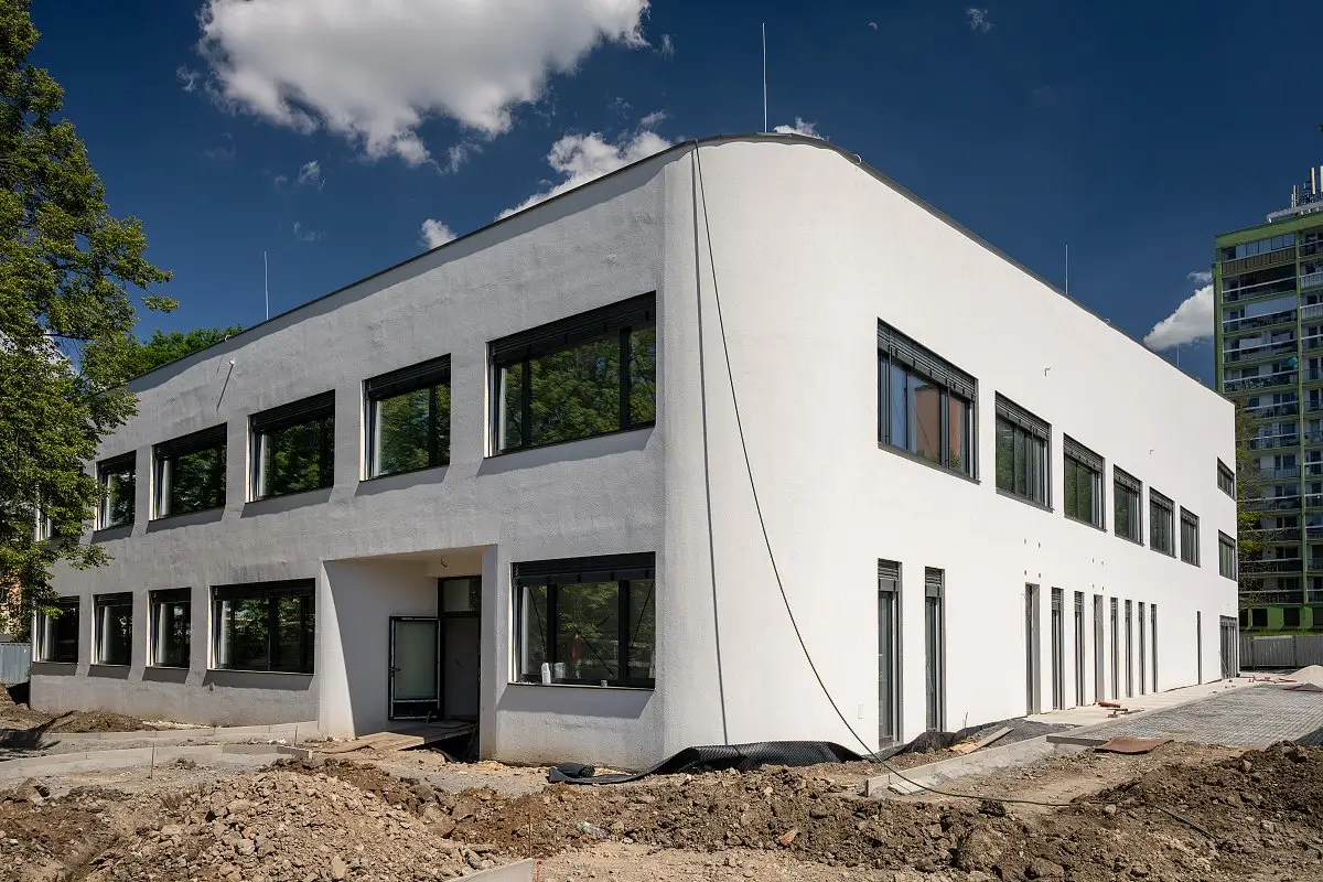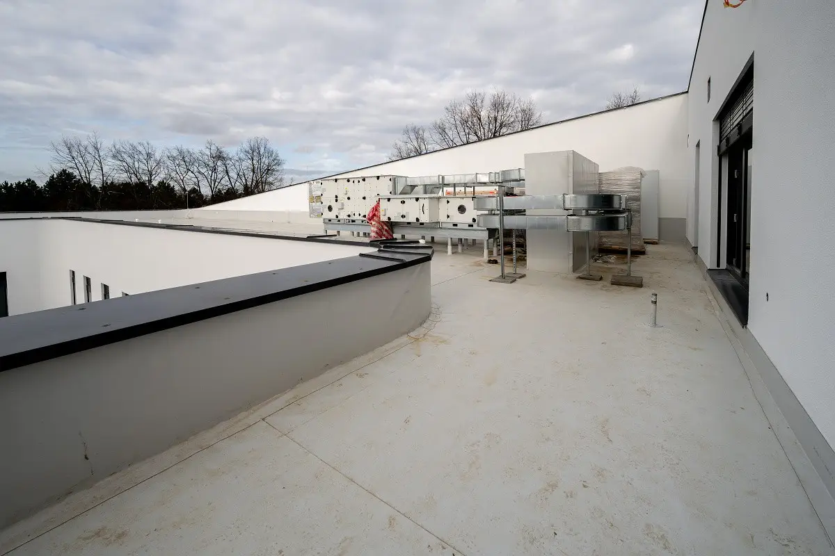 V současné fázi prací se již blížíme ke konečné podobě budovy. Práce na vnějším vzhledu spojené s instalací zelené střechy jsou téměř dokončeny. Volba zelené střechy není náhodná – přináší významné ekologické a funkcionální výhody. Kromě zlepšení mikroklimatu a eliminace hluku zelená střecha také přispívá k lepší tepelné izolaci budovy, což zajišťuje komfortní prostředí v létě i v zimě.