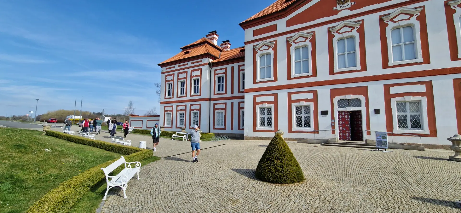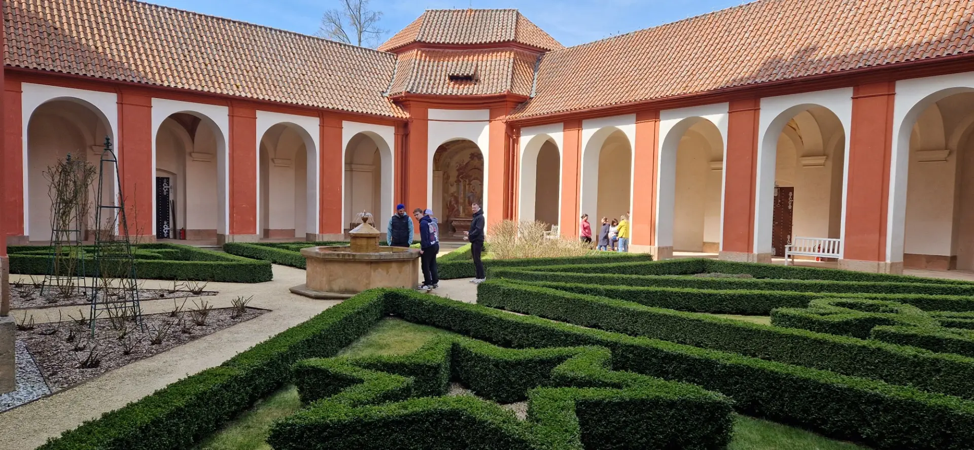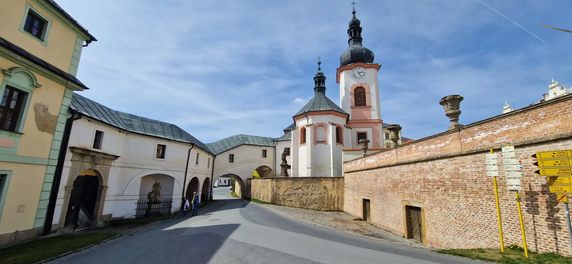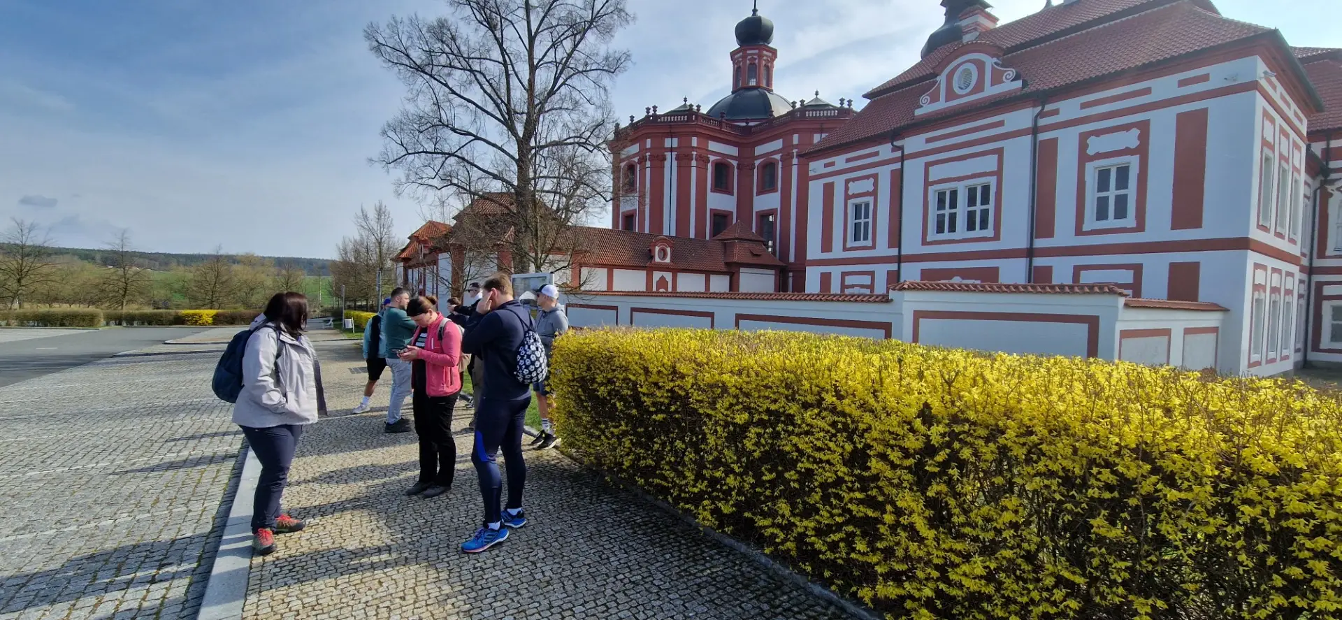 Po snídani jsme vyrazili směrem na severovýchod – do Mariánské Týnice, kde se nachází bývalý poutní areál a dnes Regionální muzeum Plzeňska. Barokní stavba byla původně navržena slavným architektem Janem Blažejem Santinim-Aichelem, který je známý svou výjimečnou schopností propojovat symboliku, matematiku a architektonickou invenci.