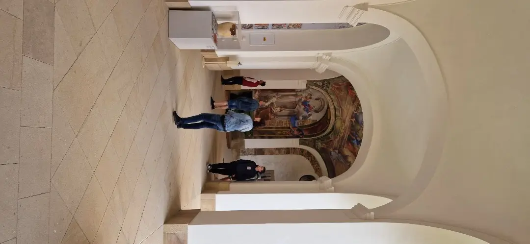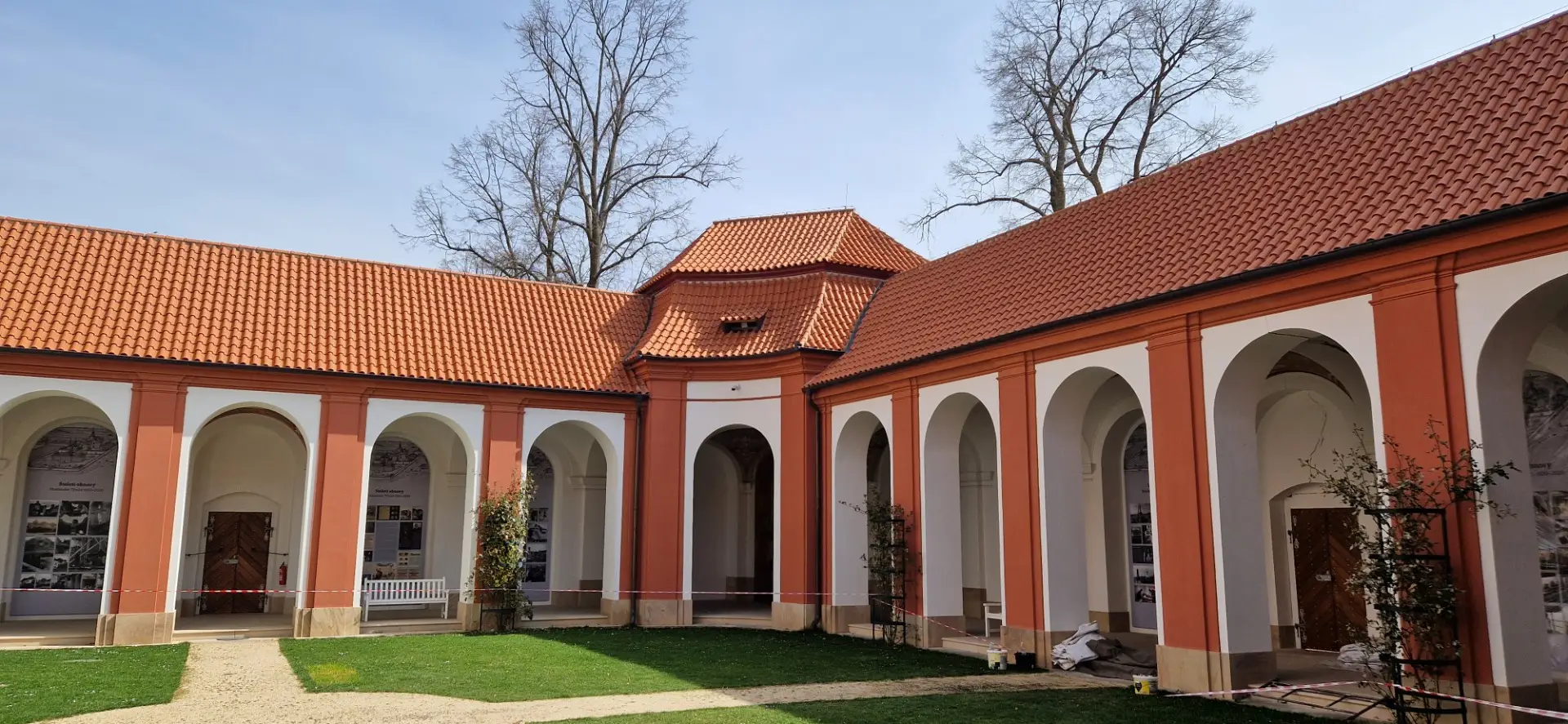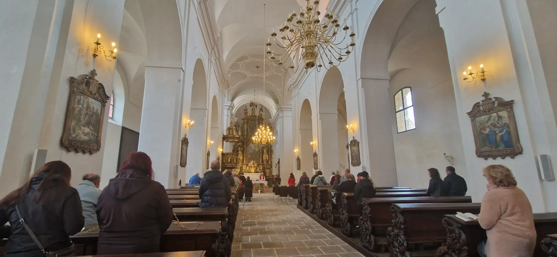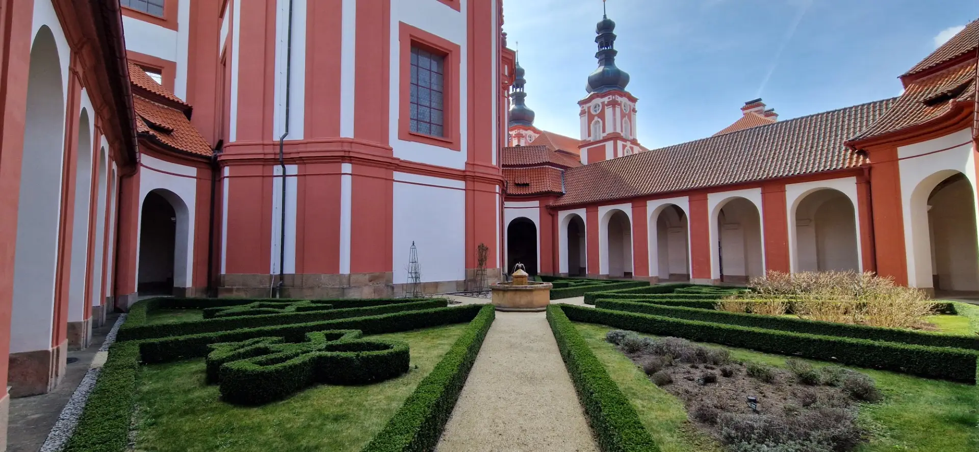 Po snídani jsme vyrazili směrem na severovýchod – do Mariánské Týnice, kde se nachází bývalý poutní areál a dnes Regionální muzeum Plzeňska. Barokní stavba byla původně navržena slavným architektem Janem Blažejem Santinim-Aichelem, který je známý svou výjimečnou schopností propojovat symboliku, matematiku a architektonickou invenci.