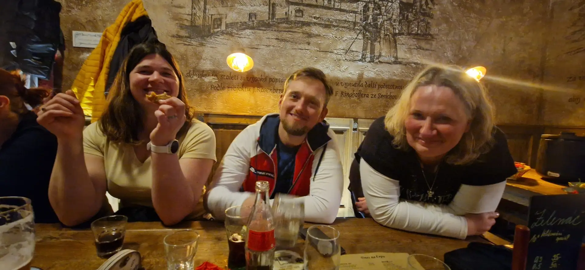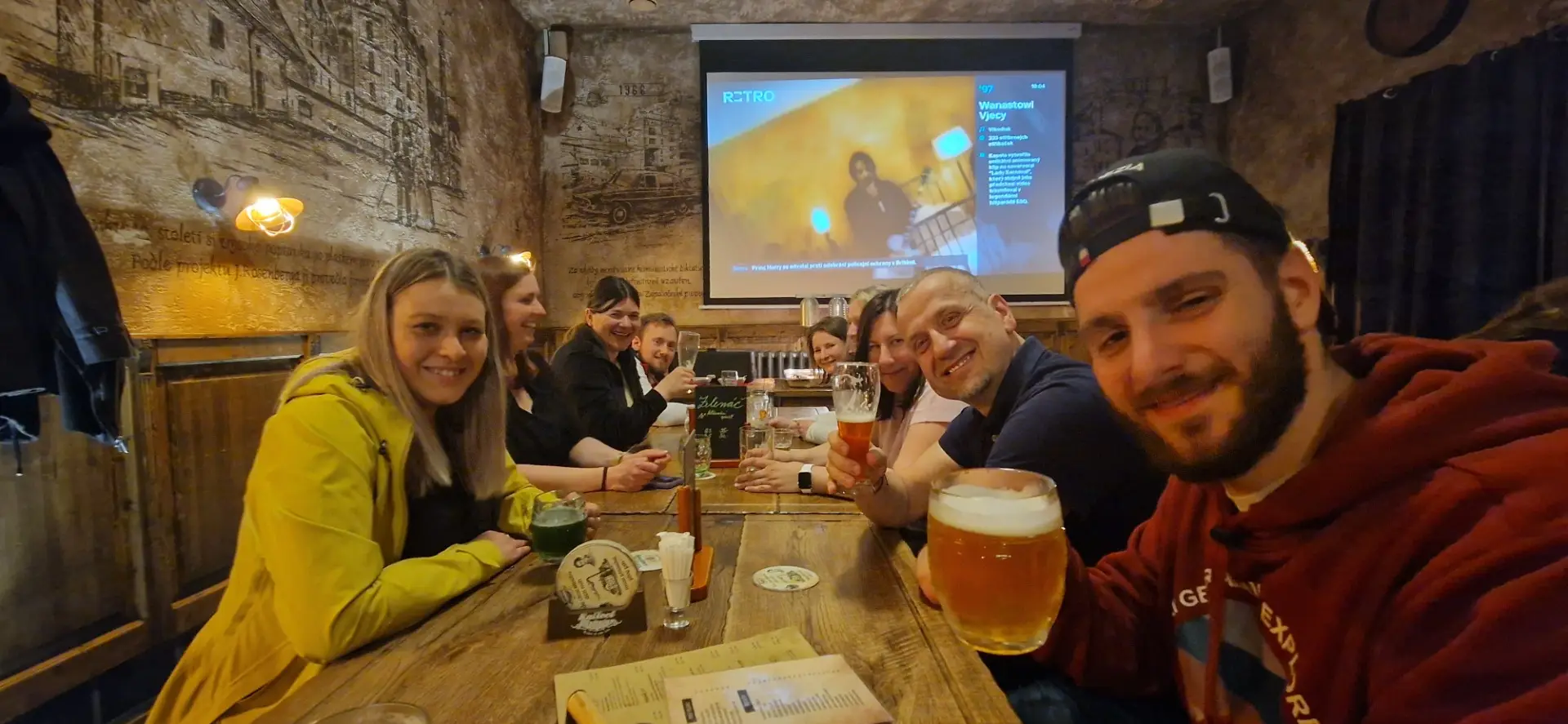 Večer jsme zakončili opět v pivovaru – čekal nás další raut, další piva a spousta smíchu a povídání.Týmová atmosféra se nesla v duchu otevřenosti a přátelství, a to se počítá.